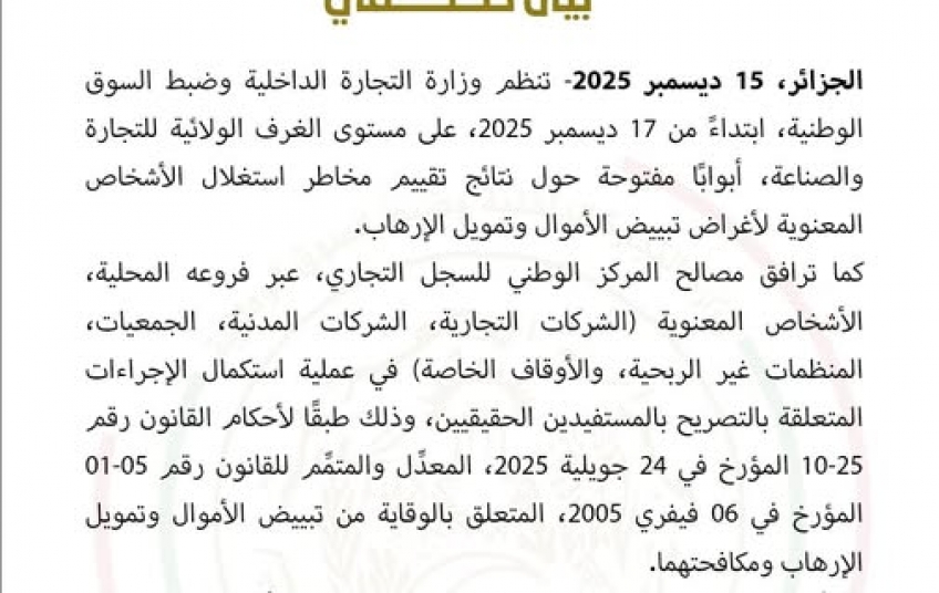 S Services aux entreprises أبواب مفتوحة حول نتائج تقييم مخاطر استغلال الأشخاص المعنوية لأغراض تبييض الأموال وتمويل الإرهاب